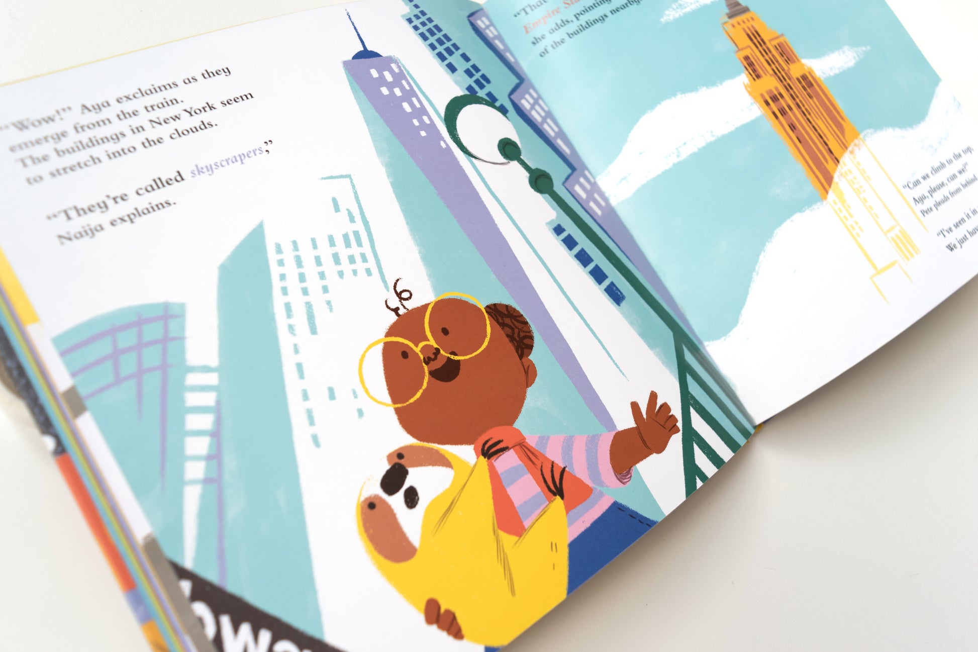 Take a bite of the Big Apple with Aya and Pete! From the Statue of Liberty to yellow taxis and hot dog stands, this book captures the sights, sounds, and flavors of New York City through the eyes of an adventurous child, Aya, and her lovable sloth sidekick, Pete. Ideal for children ages 3–7 who will love discovering America’s most iconic city. Ships in a sturdy cardboard mailer.